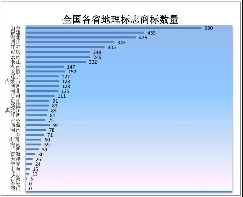 截止 3 月份,共核準(zhǔn)注冊 4996 件地理標(biāo)志商標(biāo),全國地理標(biāo)志累計(jì)注冊量排名前五?。ㄗ灾螀^(qū)、直轄市)的是:山東?。?80 件)、福建?。?59 件)、湖北?。?26 件)、四川?。?43 件)、江蘇?。?05 件),占全國總量的 44.3%。國內(nèi)單一主體擁有地理標(biāo)志商標(biāo)數(shù)量前三的是:淮安市淮陰區(qū)畜禽產(chǎn)業(yè)協(xié)會(huì)(34 件)、漣水縣農(nóng)副產(chǎn)品營銷協(xié)會(huì)(25 件)、洪澤縣洪澤湖農(nóng)產(chǎn)品協(xié)會(huì)(23 件)。