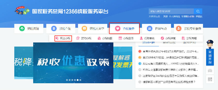 ②點擊「辦稅服務(wù)」下的「網(wǎng)上辦稅」