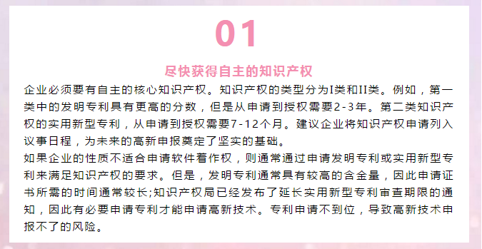 所以提醒大家:首先,要及時申報高新技術,難度肯定是會逐年提高的。如果今年可以申報,千萬不要等到明年;第二,確保申報成功率,必須提前做好高新技術企業(yè)認定規(guī)劃。例如,今年申報為時已晚,那么2020年的高科技企業(yè)認證將從現(xiàn)在開始準備。準備越多,成功率越高。